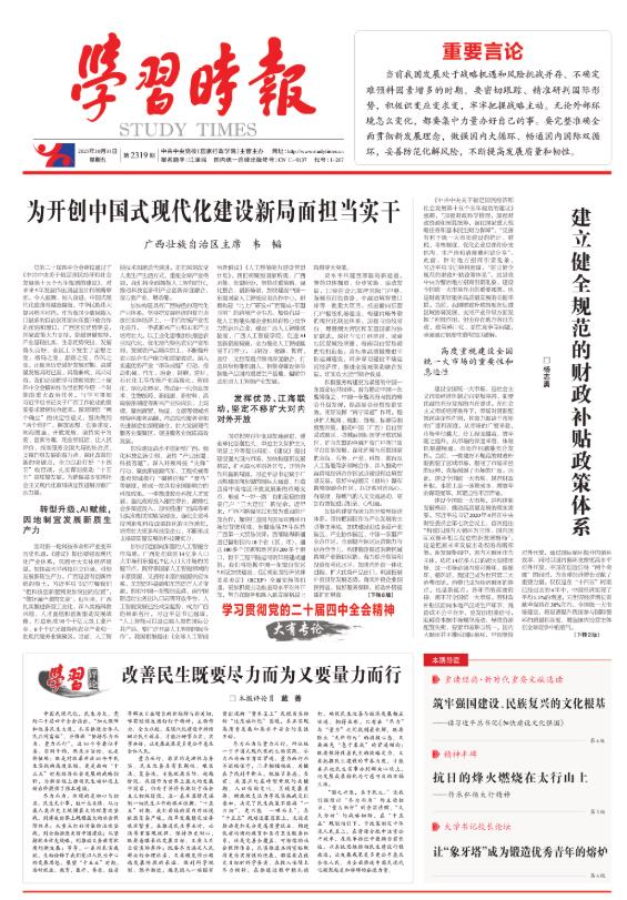 《建议》稿牢牢把握共同富裕的目标要求,围绕保障和改善民生,在促进高质量充分就业、完善收入分配制度、办好人民满意的教育、健全社会保障体系、推动房地产高质量发展、加快建设健康中国、促进人口高质量发展、稳步推进基本公共服务均等化等方面部署一批均衡性可及性强的政策举措。着眼缩小区域差距、城乡差别,在加快农业农村现代化、扎实推进乡村全面振兴,优化区域经济布局、促进区域协调发展等方面部署一批务实举措。着眼促进人民精神生活共同富裕,提出弘扬和践行社会主义核心价值观,大力繁荣文化事业,加快发展文化产业,提升中华文明传播力影响力。